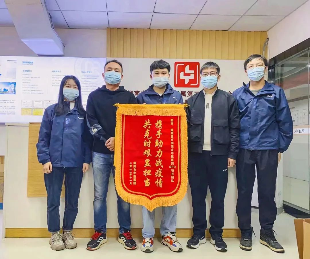 德榮人正以高度的使命感和責(zé)任感投身疫情防控之中,在疫情防控中勇于擔(dān)當(dāng)、貢獻(xiàn)力量。惟其艱難,才更顯勇毅;惟其篤行,才彌足珍貴。在本次抗疫戰(zhàn)爭中德榮SPD共接收防疫物資1000余件、共為95個(gè)科室保供防疫物資、配送1400余頻次。作為一名德榮人“一切為人民健康服務(wù)”的使命牢記于心,疫情仍未結(jié)束,防控不可松懈。德榮醫(yī)療為瀏陽市中醫(yī)醫(yī)院打贏這場疫情防控阻擊戰(zhàn)貢獻(xiàn)著自己的力量。同時(shí),瀏陽市中醫(yī)醫(yī)院對(duì)我們的工作給予了充分的肯定,11月24日收到了醫(yī)院贈(zèng)予瀏陽SPD項(xiàng)目組“攜手助力戰(zhàn)疫情,共克時(shí)艱顯擔(dān)當(dāng)”錦旗以及感謝信。